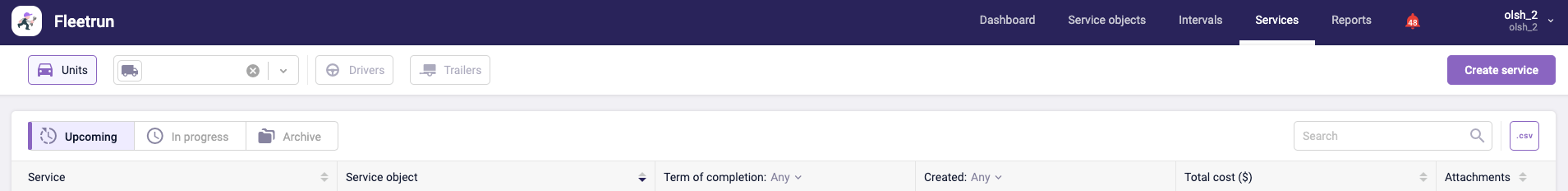 today we have updated Fleetrun with the ability to create services and intervals for several units at a time. Previously we had heard from you that there are cases when several vehicles are taken to a workshop for, for example, oil change and these data need to be entered in the system. Before this update you had to select each unit separately and work with it for service creation.