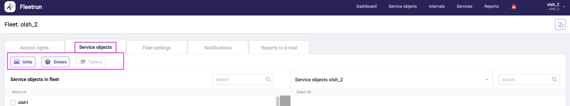 Now in the upper section of the users list the system displays the users that have at least one access right to the fleet. In the frameworks of these users they are sorted in the alphabetic order.