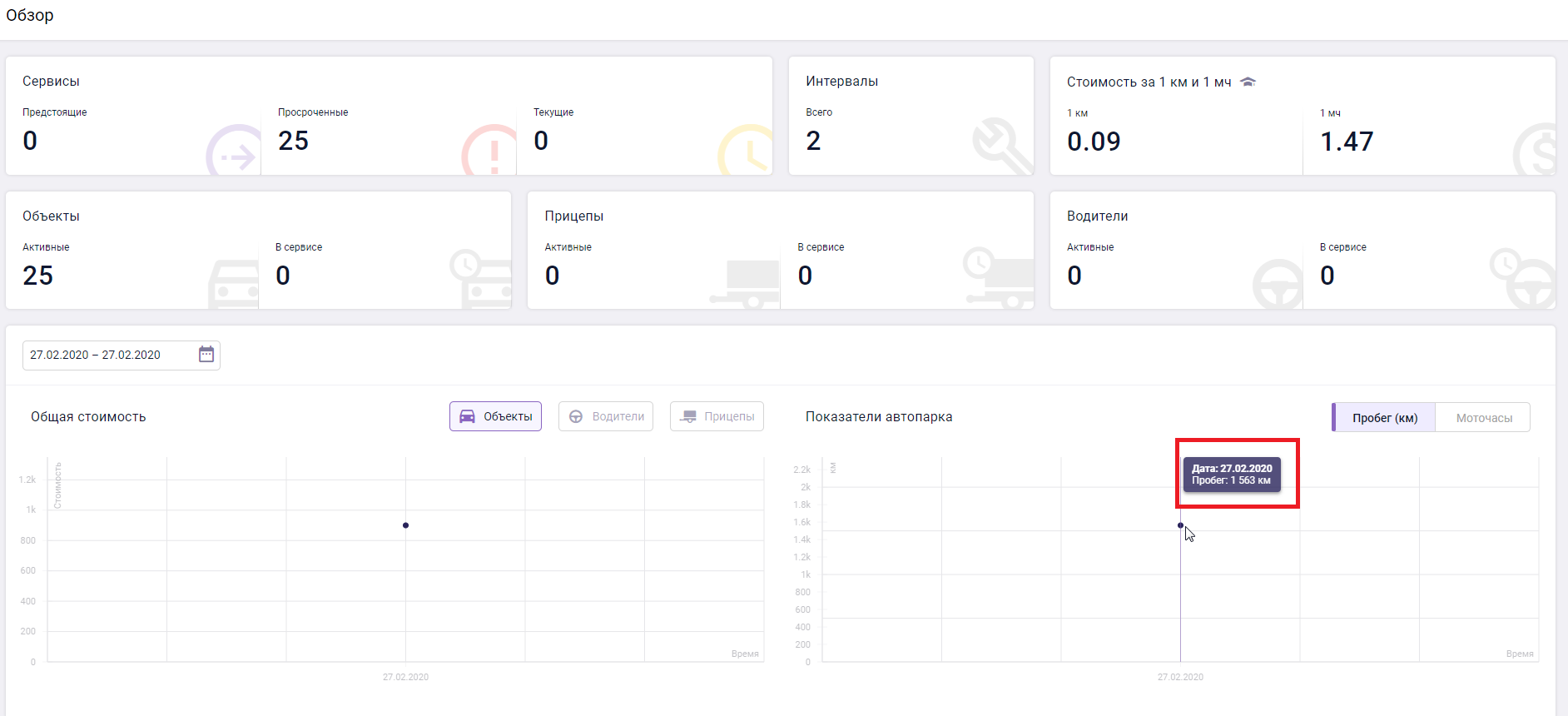 Обновленные данные также повлияют на подсчет значения стоимости за 1 км и 1 м/ч.