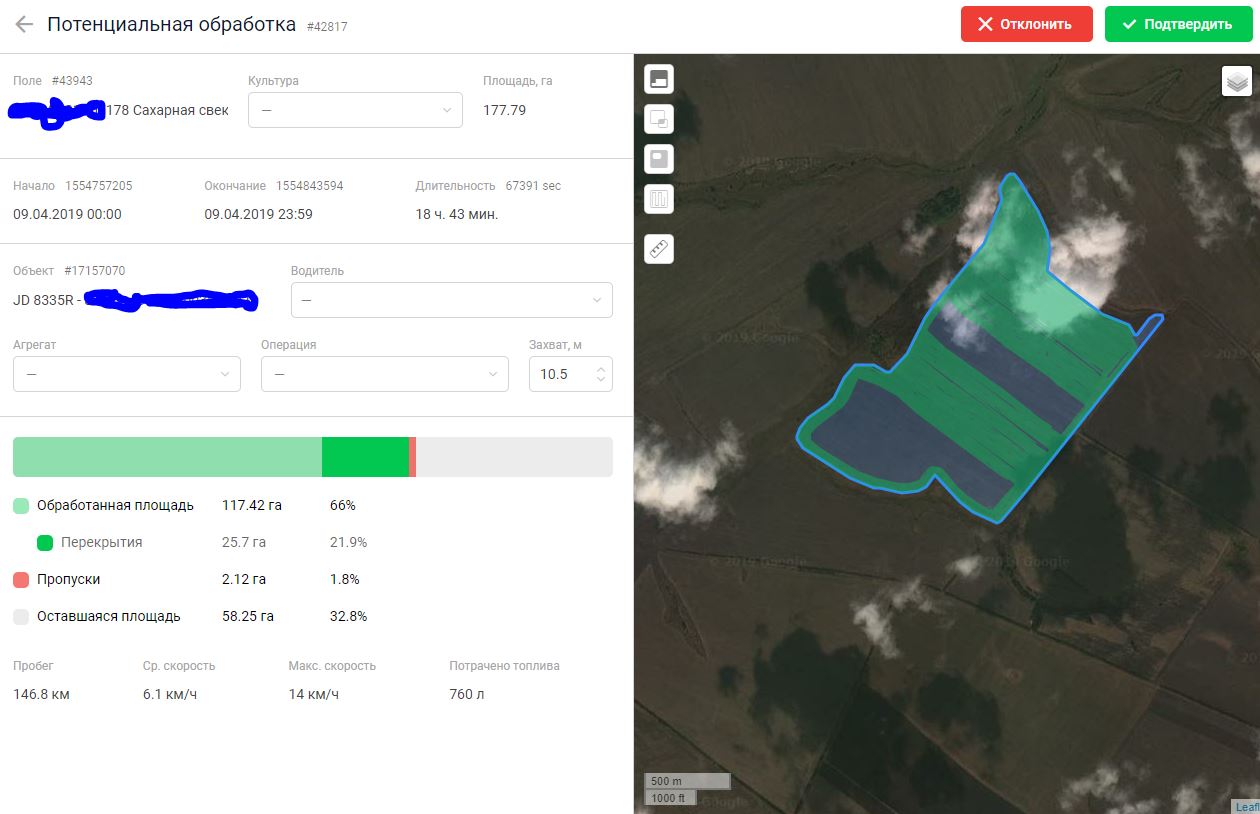 o.rosenko wrote:Добрый день. На поле выполняются работы и меняются только водители физически , объект не выезжает с поля, привязки по карточкам нет, при регистрации обработки получается один интервал в сутки (https://prnt.sc/vkm1fm) и нужно разделять работу по сменам. Когда настраиваешь смены в настройках ресурса, то как пишет справка вся работа уходит в одну смену если большая часть обработки попадает в допустим первую смену, хотя по факту работа была выполнена в 2 смены , просто в одной больше гектар ,а в другой меньше . Было бы отлично что бы выводилось как в Wialon , обрезало интервал и выводило чётко по установленым сменам количество работ.