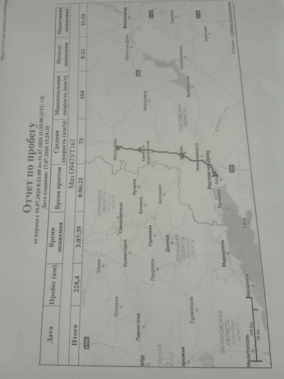 Topic: Распечатка на одном листе А4 экспресс-отчета по поездкам с треком