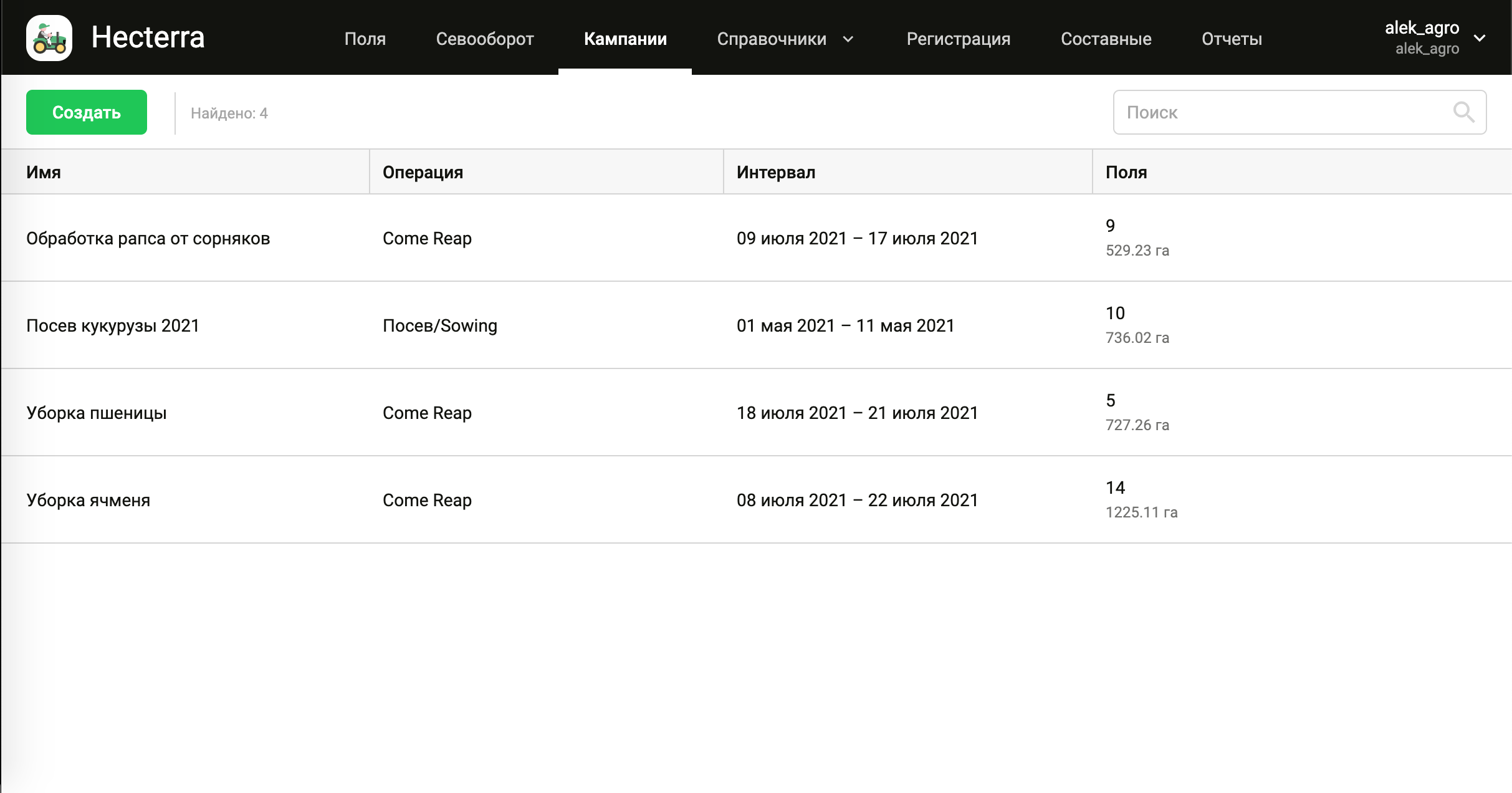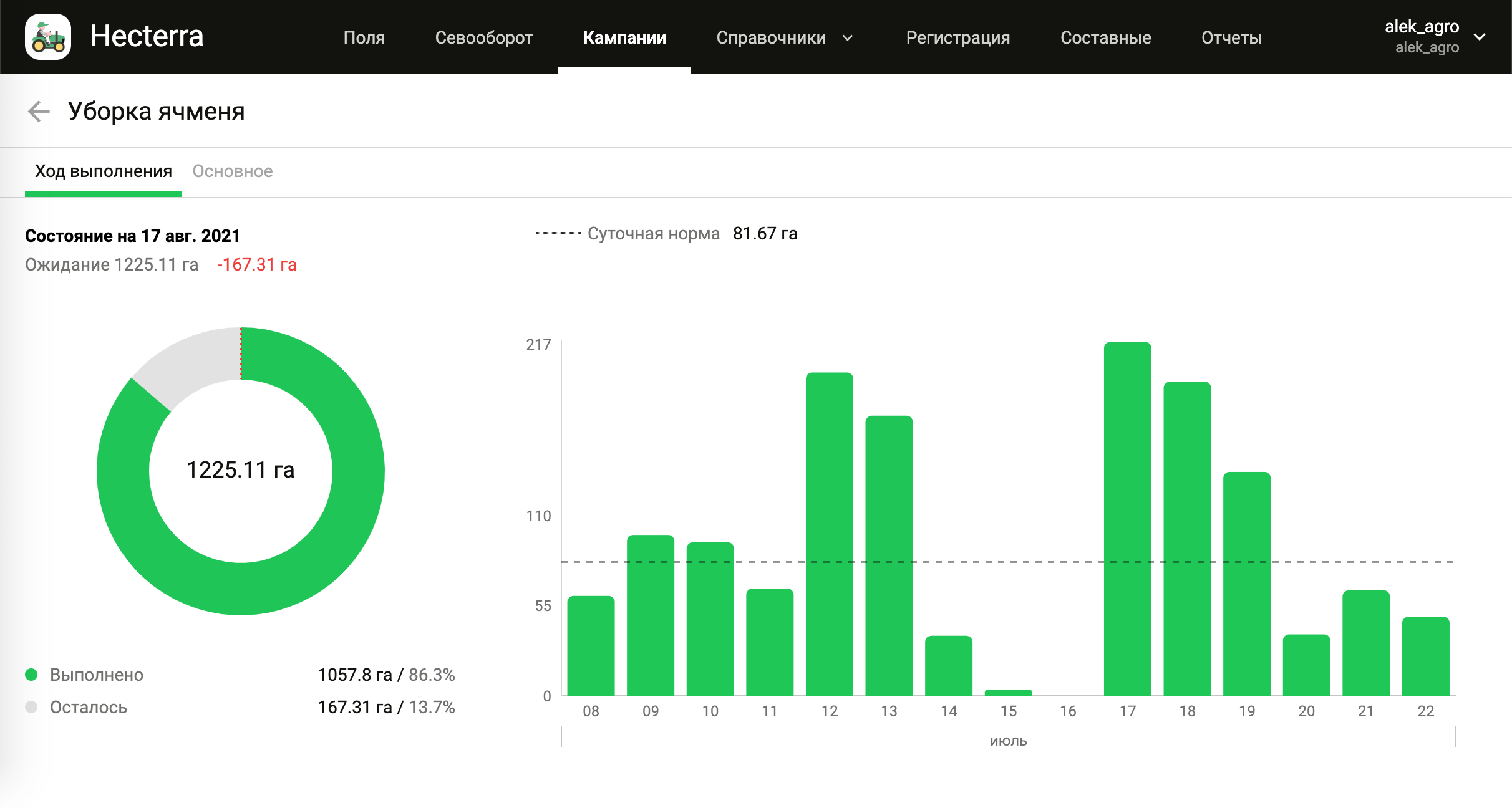 1.1 "всего с начала сезона" - площадь отдельной операции, по культуре, счиатется при налии севоборота на поле и плана операции, счиатеся как сумма всех проведений выбранной операции операции с начала сезона по всем полям под выделенной культурой