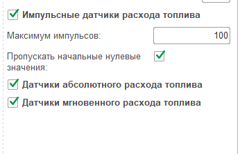 2) Куда делись настройки настройки импульсных датчиков и датчиков абсолютного расхода топлива. Не вижу их в интерфейсе Wialon ( скрин (Снимок_Импульс) из 1с, но похожая настройка была ранее во вкладке «Расход топлива» у объекта).