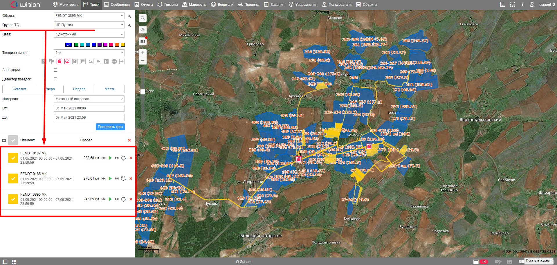 Было бы круто если можно было выбрать время /временной интервал и на карте отображалась позиция выбранных тс. Не только для полей актуально.