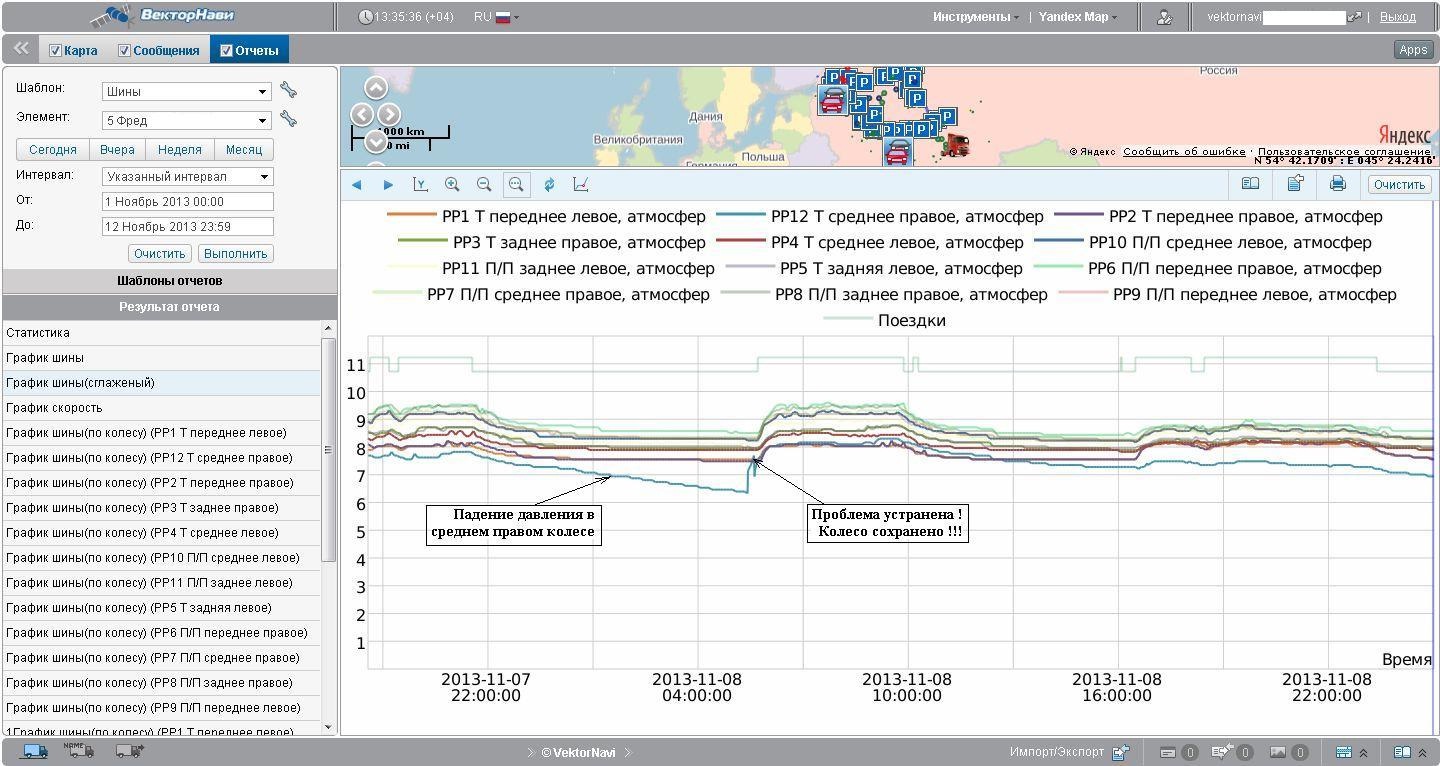 . Существует возможность подключения монитора к терминалам Galileo, Автограф, Ruptella, Novacomm, TR-600 по 232 порту с передачей информации о давлении в шинах на Wialon Hosting.