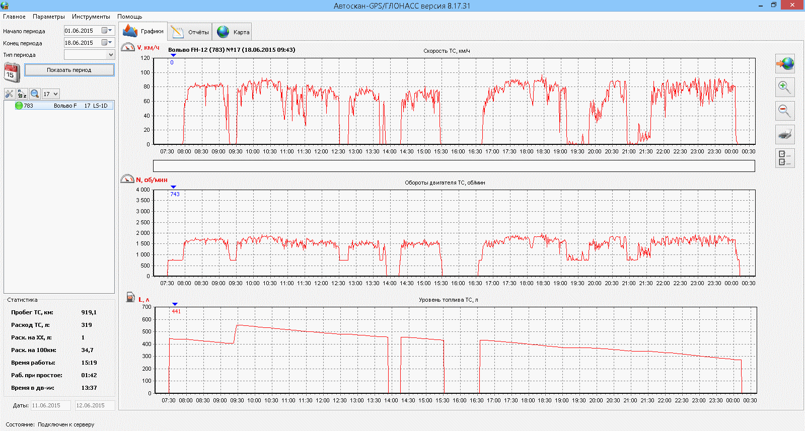 Подключаем обороты двигателя всегда, на КАМАЗе сигнал оборотов присутствует на самом тахометре (там 3 контакта плюс минус и обороты), на скрине ниже так они у нас отображаются (средний график)